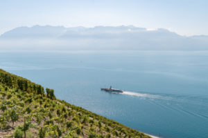 Vignoble vertigineux de Lavaux, plongeant sur le lac Léman.